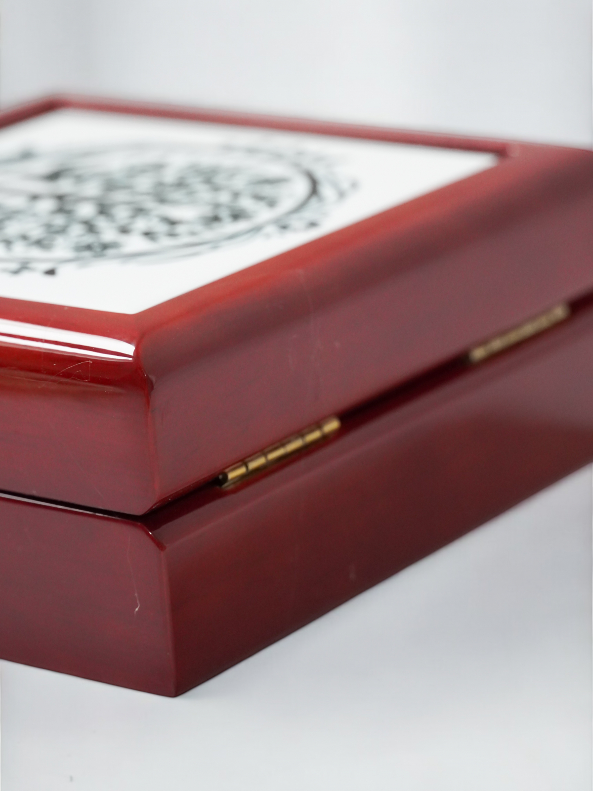 Capacul fiecărei cutii este împodobit cu o placă de gresie ceramică, imprimată cu simboluri tradiționale autentice, menite să spună povești din cultura și spiritualitatea românească. Aceste motive adaugă un farmec aparte, transformând fiecare cutie într-un obiect unic, ce îmbină utilitatea cu arta.