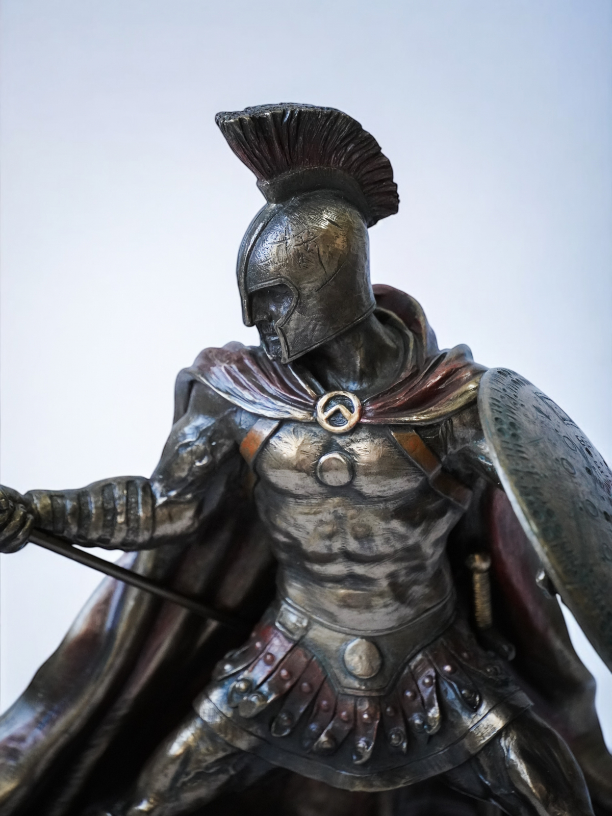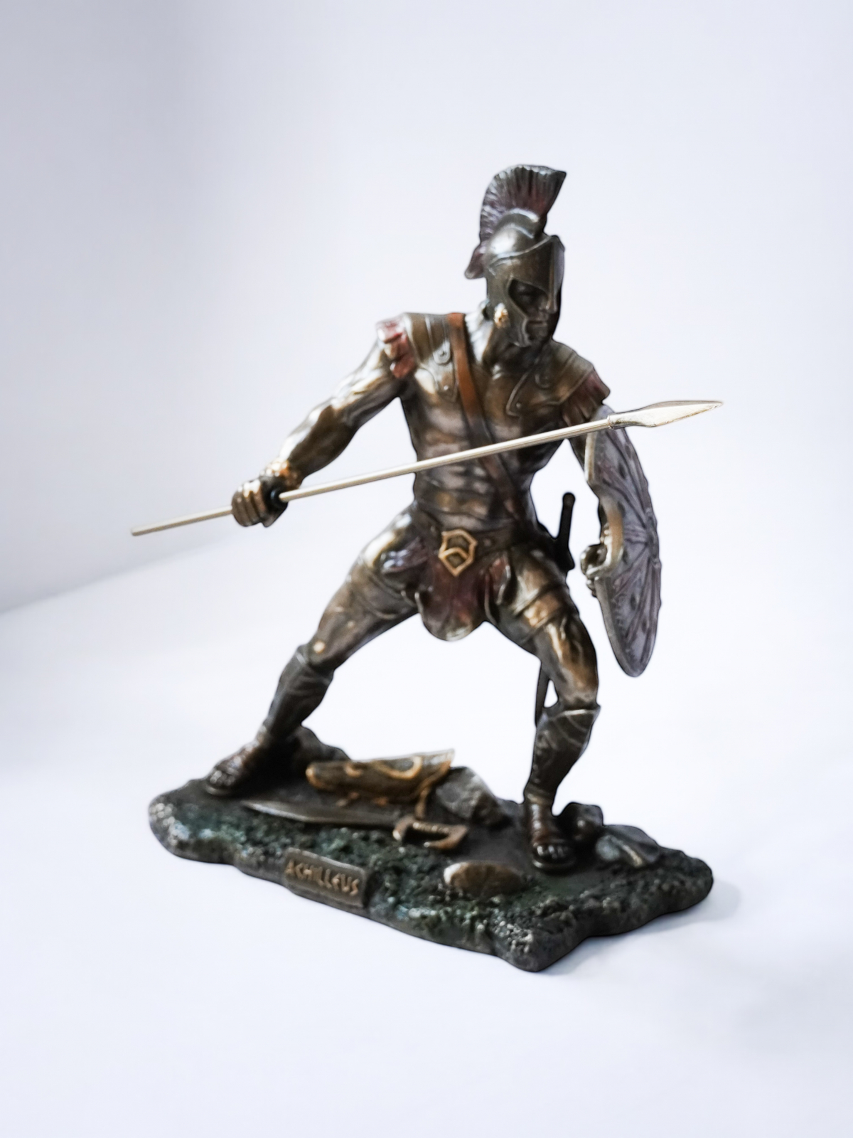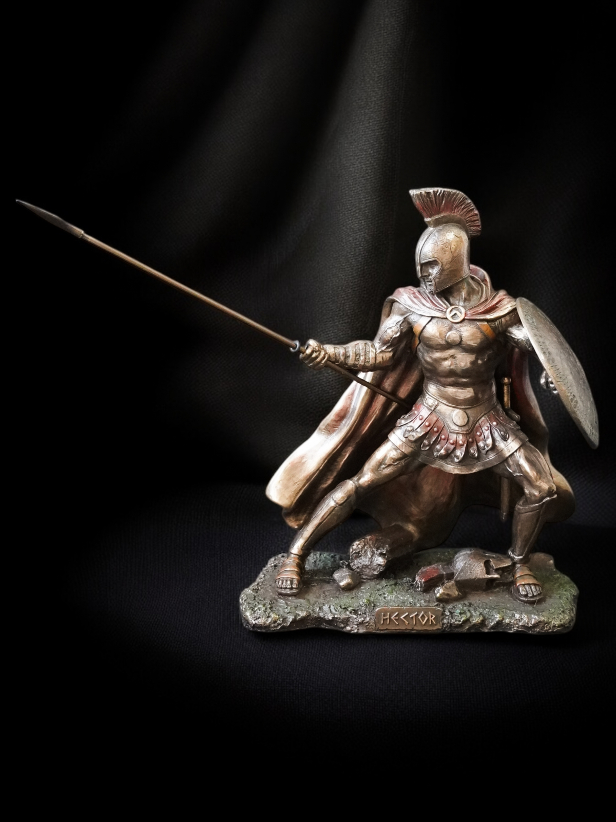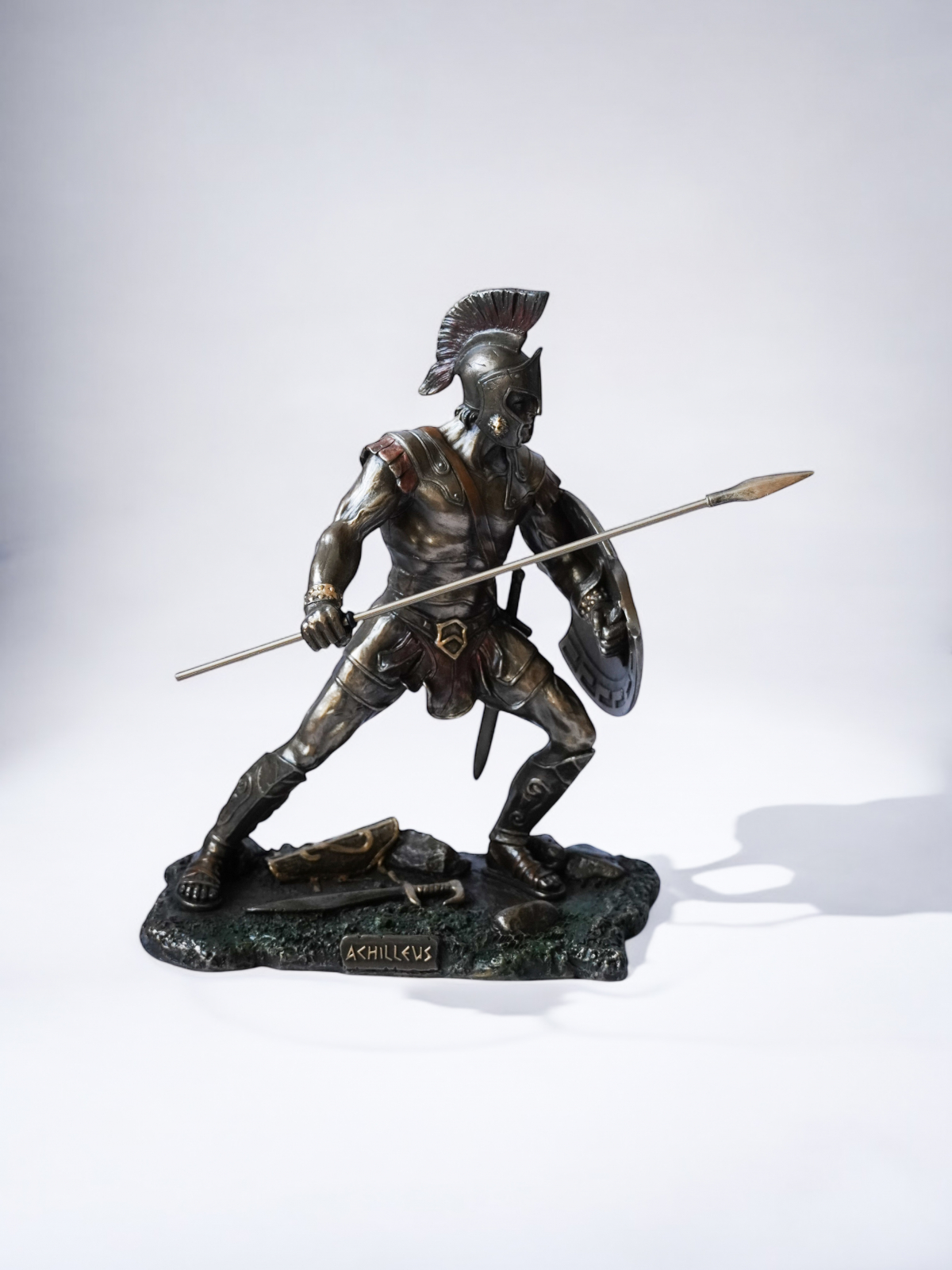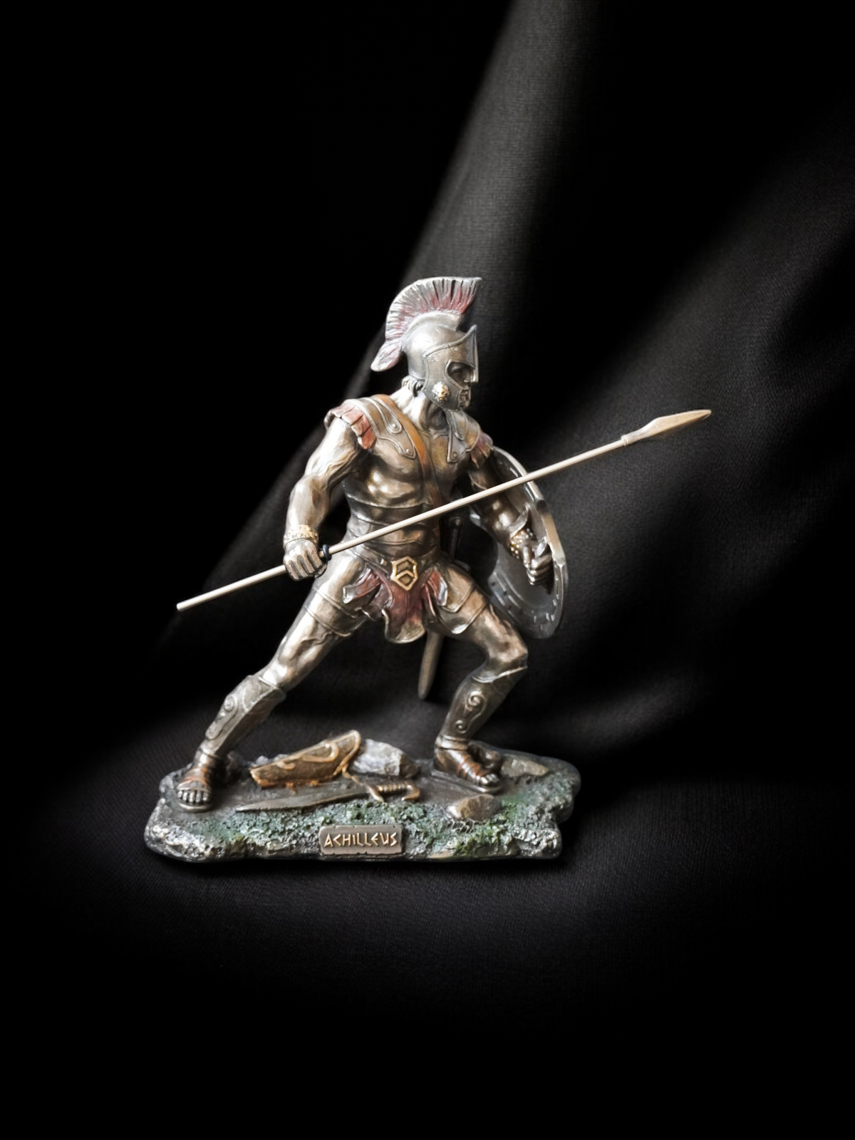 Acest set impresionant de statuete îi înfățișează pe Ahile și Hector, două dintre cele mai legendare figuri ale mitologiei grecești, surprinse într-un duel epic. Parte din vestita colecție Veronese, aceste statuete sunt realizate la cele mai înalte standarde, folosind tehnica cold cast (pulbere de bronz combinată cu rășină) care conferă fiecărui detaliu un aspect autentic și o finisare de excepție. Fiecare piesă este pictată manual, evidențiind cu măiestrie expresiile, armurile și dinamismul luptei.