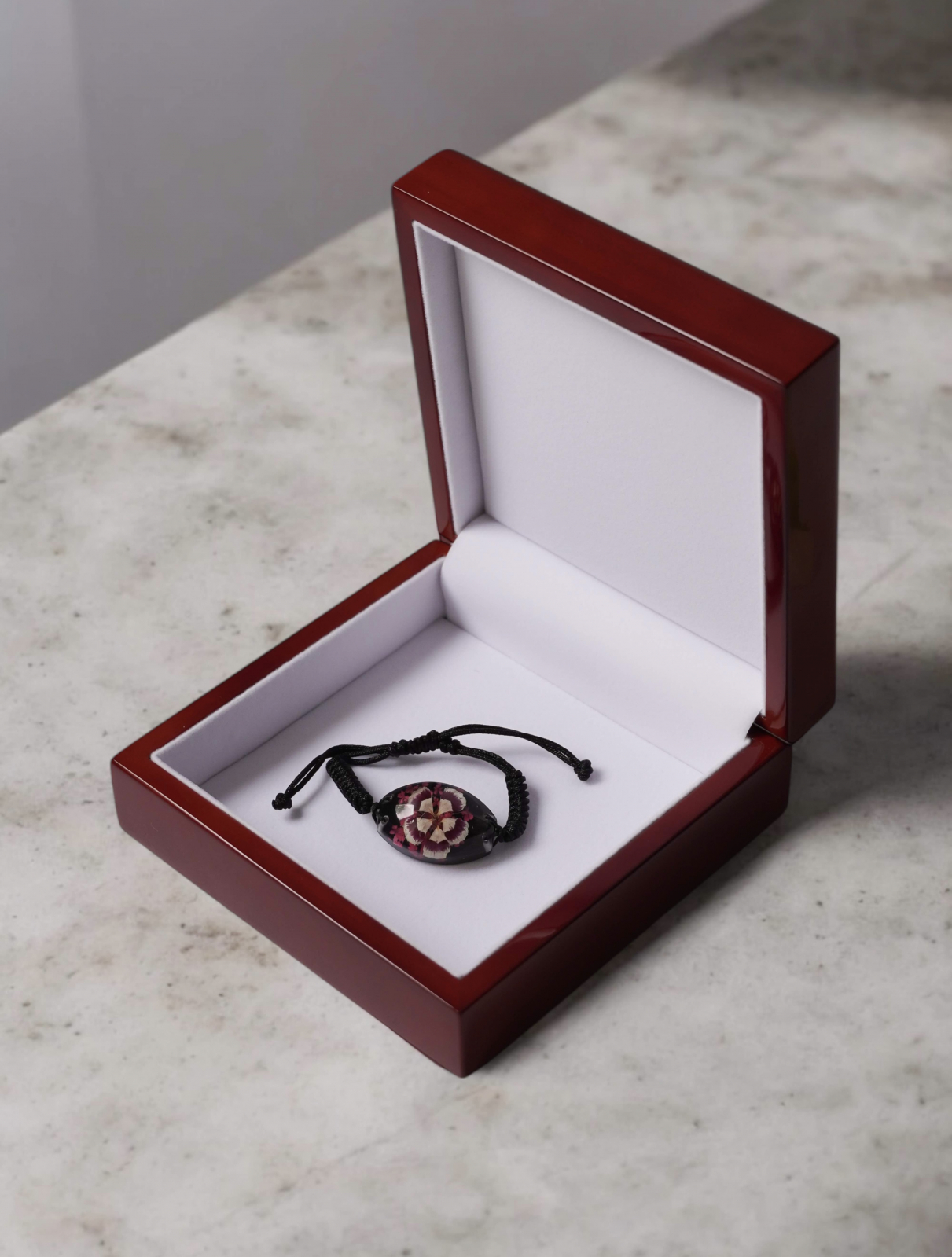 Lucrată manual și montată pe un șnur negru reglabil, brățara se potrivește oricui iubește simplitatea și legătura sinceră cu natura. Nu este doar un accesoriu, ci un mic talisman – un simbol al gingășiei, al momentelor care merită păstrate și al lucrurilor care contează cu adevărat.